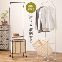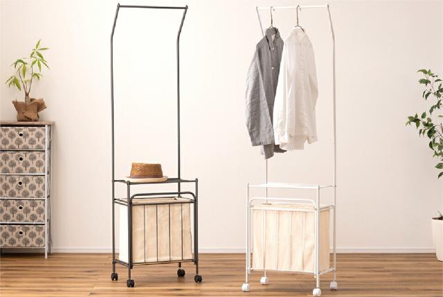 ランドリーハンガー キャスター付き バスケット付き 洗濯 ランドリーバスケット 洗濯物 収納 シンプル 洗濯カゴ 洗濯物入れ ダークグレー