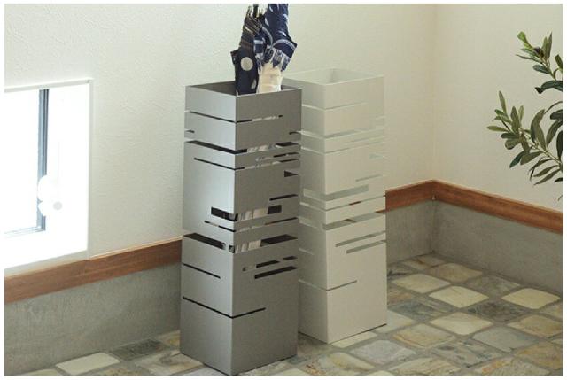 玄関の印象をグッとおしゃれにするモダンな傘立て。