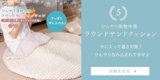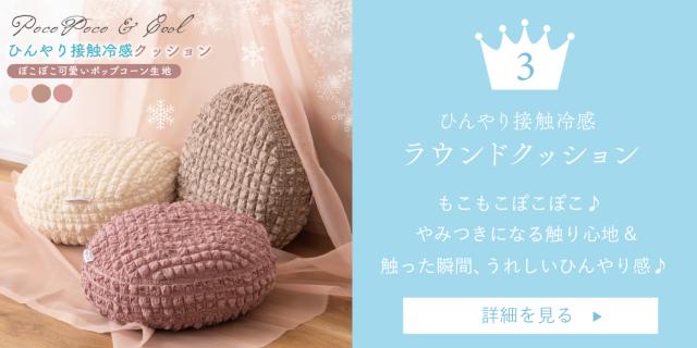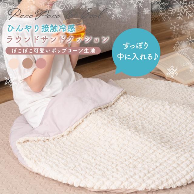 《もちっとひんやり触感がやみつきに!》人気のポップコーン生地を使った接触冷感のラウンドクッション・冷感アイテムにはなかなか無いニュアンスカラーで、インテリアにも合わせやすいデザインにこだわりました♪