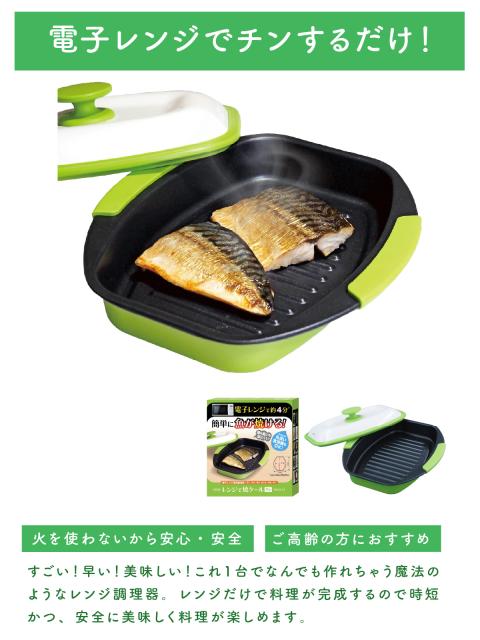 レンジで焼き魚 レンジグリルパン レシピ付き レンジ 電子レンジ専用 調理 時短調理 料理 調理器具 調理器 魚焼き 野菜 温野菜 蒸し器 ご