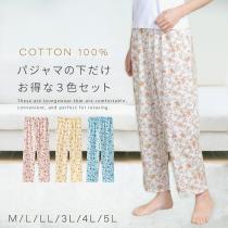 欲しかったパジャマの下 3色組 パジャマ 下だけ 大きいサイズ レディース 花柄 部屋着 綿 洗い替え パジャマのズボン ズボン パンツ 下だ