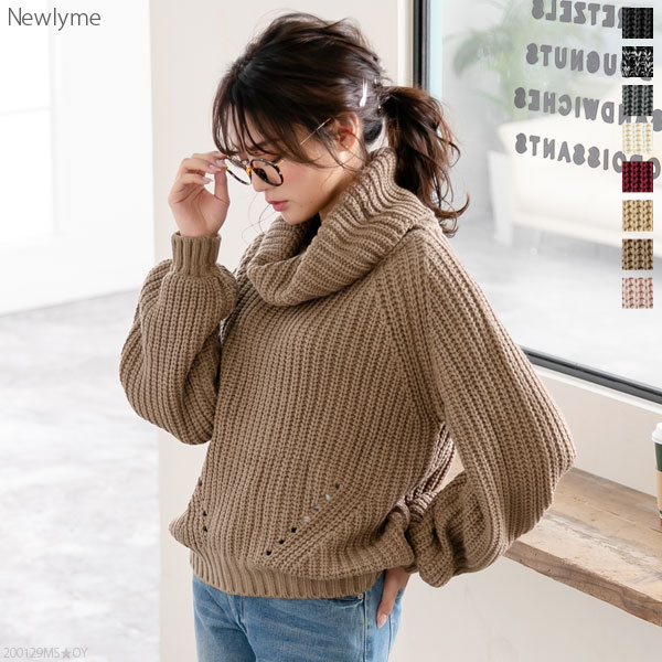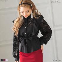 【春新作】[2wayフロントリボンプチハイネックレースパフスリブラウス|DB|LX|SE||]【2020SS】◆入荷済