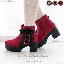 [サテンリボン変形ウエッジブーツ|DML|GL|SW||]0917