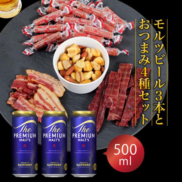 母の日 ギフト プレゼント Pontaパス会員 お酒 ビール おつまみ ギフトセット サントリー ザ・プレミアムモルツ 500ml 3本とおつまみ5袋