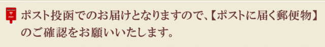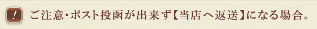 ※ご注文時にご登録頂いたお届け先ご住所に間違いがあり誤ったポストへ配達された場合、 当店でのお荷物の回収は出来ず、再送も出来かねますので予めご了承くださいませ。