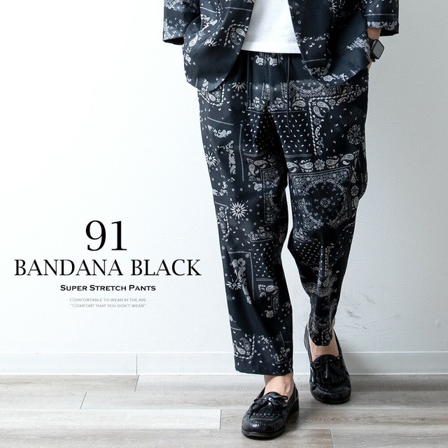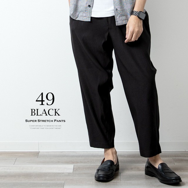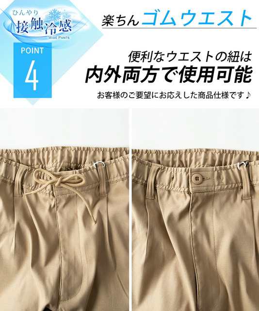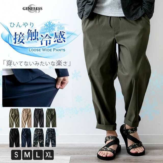 接触冷感 メンズ パンツ 夏 涼しい ボトムス 清涼 涼感 レギパン 薄手 ワイドパンツ チドリ ゆったり おしゃれ ゴムウエスト ブラック ネ