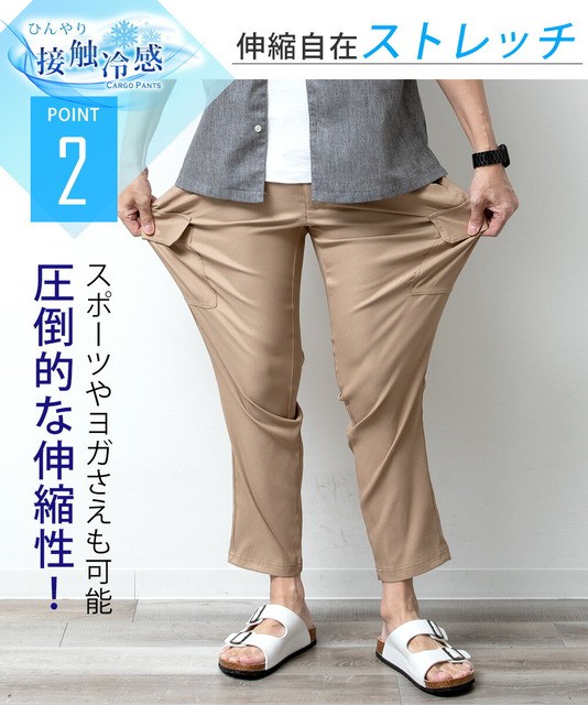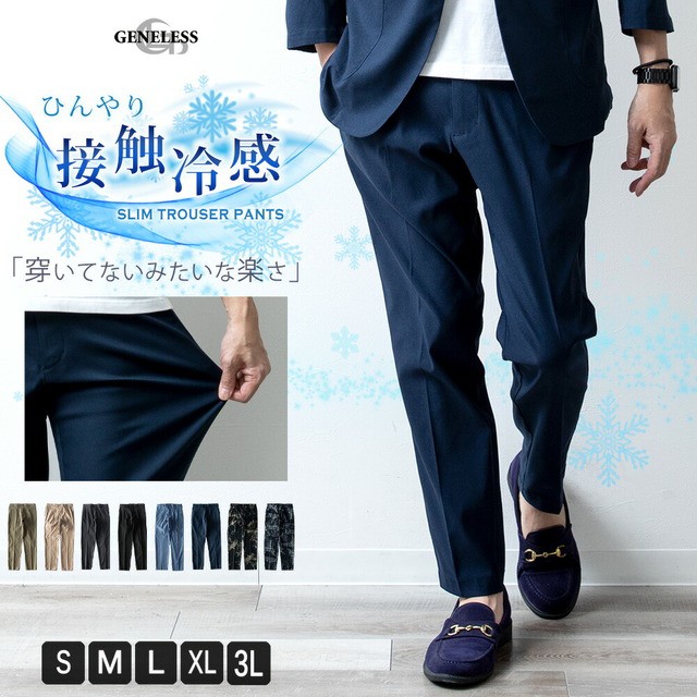 接触冷感 メンズ パンツ 夏 ストレッチ ゆったり 涼しい 吸水速乾 ボトムス 清涼 涼感 超伸縮 4111700