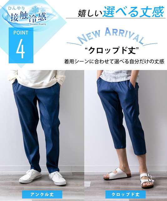 接触冷感 メンズ パンツ デニム 涼しい ボトム スーパーストレッチ 冷感 アンクルパンツ ストレッチパンツ EM108009