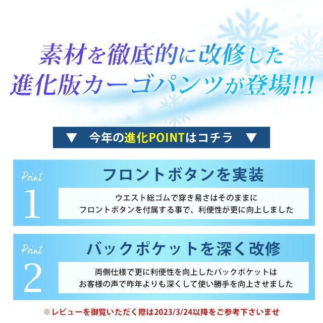 | しっかり伸びる!楽に穿けるカーゴパンツ |