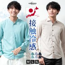 接触冷感 シャツ メンズ 涼しい 長袖 バンドカラー 長袖シャツ 春夏 無地 ホリゾンタルカラー GWA6337 トップス ブルーベルベット 全5色