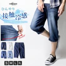 ハーフパンツ メンズ ひざ下 クロップドパンツ 接触冷感 ショートパンツ デニム ストレッチ NEP-43 EM108010