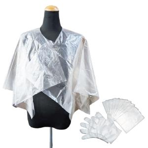 使い捨て 染髪 ケープ10枚+手袋10ペア つややヘナ ヘナ染め ケープ カットクロス 110cm×80cm 脱着しやすい マント ロング ポリ ビニー