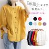 レディース 綿麻風 半袖 五分袖 シャツブラウス レディース 体型カバー 夏 前開き 丸襟 カジュアル ゆったり 薄手 涼