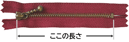 ※ファスナーの長さは上止め〜下止めまでの長さで測ります。