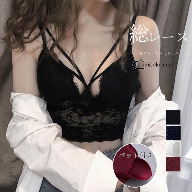 【メール便対応 送料無料】ブラ カップ入り レディース レース Vネック ヨガ キャミソール スポーツブラ 昼夜兼用 Vネック ナイトブラ