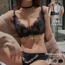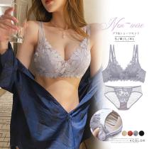【メール便 送料無料】セクシー ランジェリーセット 花柄 レース ノンワイヤー ナイトブラ 谷間 盛れる ブラ 痛くない インナー 楽ちん【