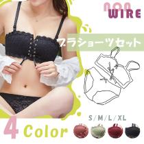 【メール便 送料無料】ノンワイヤー カップ付き ビスチェブラ&ショーツセット セクシーランジェリー らくらく盛れる 【KU】81XINYX-002