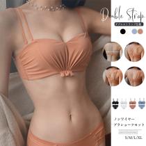 【メール便 送料無料】ノンワイヤーブラ ダブルストラップ セクシーランジェリー 下着 セクシー ブラショーツセット【KU】81XINYX-005