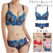 【メール便 送料無料】ブラジャー 3/4カップ 花柄刺しゅう レースランジェリーセット 可愛い 盛りブラ 韓国風 美胸ワイヤレスブラ 痛くな