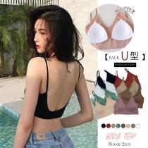 【メール便送料 無料】ショート丈 リブ キャミソール カップ付き おしゃれ vネック キャミソール インナー ナイトブラ 【KU】HONGJUN-001