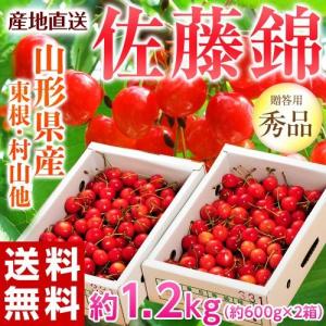さくらんぼ 佐藤錦 山形県産 秀品 Mサイズ 約1.2kg(約600g×2箱) 産地箱 産地直送 ※冷蔵 送料無料