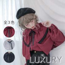 【一部即納】マント風リボンブラウス ブラウスのみ リボン付き レディース ロリータ 長袖 変形ブラウス 名探偵 シャツ 甘ロリ ゴスロリ