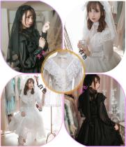 ブラック即納あり ロリータ ホワイト ブラック 花嫁 ドレス ワンピース ワンピのみ 透け感 レース フリル 白ロリ 黒ロリ レディース ロリ