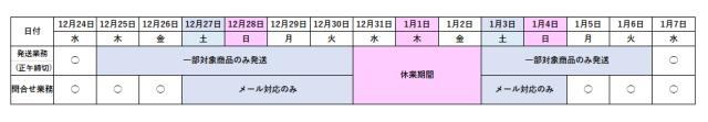 年末年始に伴う商品の発送等につきましてお知らせいたします。