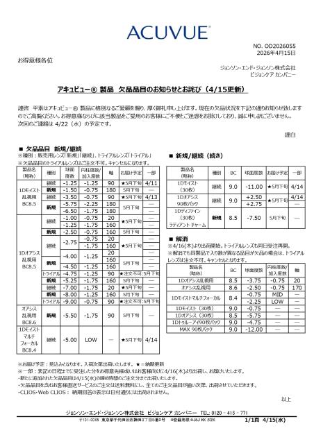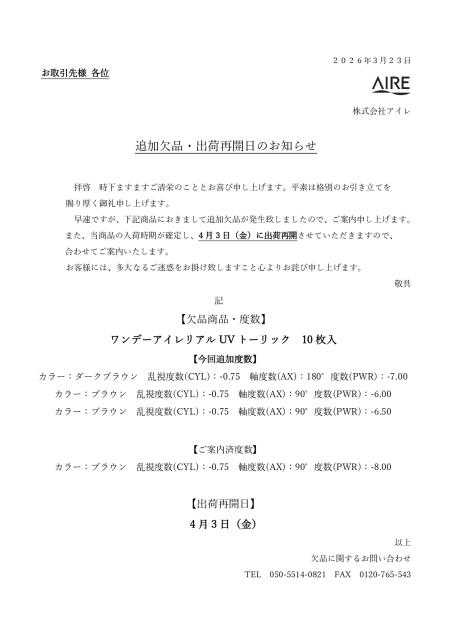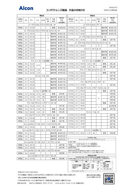 該当の製品や度数をご注文いただいた場合には、誠に申し訳ございませんが該当のご注文を【キャンセル】とさせていただきます。