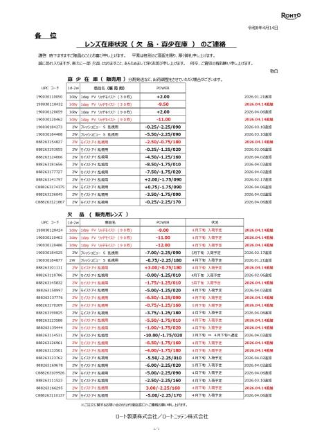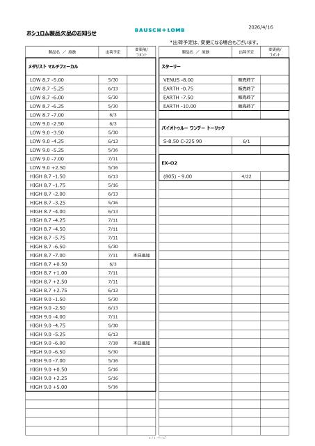 以下の製品や度数は商品ページの項目選択肢の仕様上注文できますが、メーカー欠品中の為、商品のお手配ができなくなっております。