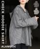 春新作 ラフ感漂うチェック柄フーディーオーバーシャツ レディース ファッション トップス シャツ チェック 総柄 フード オーバーサイズ