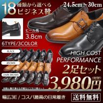 2足セット ビジネスシューズ メンズ 2足で3,980円(税別) 18種類 30cmまでご用意