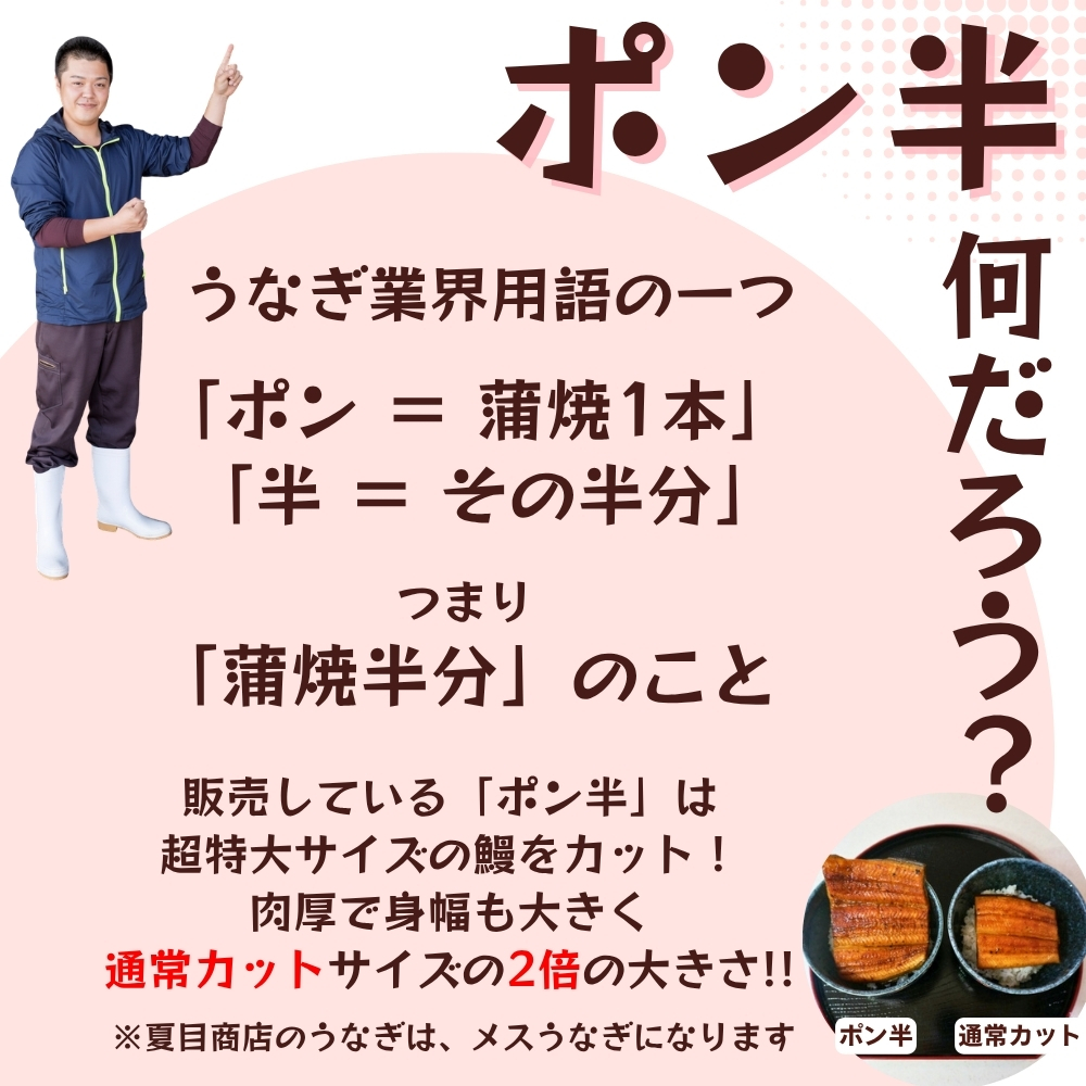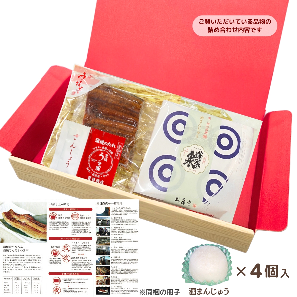 肉厚で食べ応え抜群の 特大カット蒲焼「ポン半」に 酒まんじゅう4個セット |