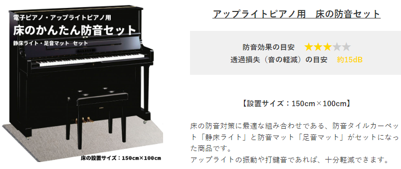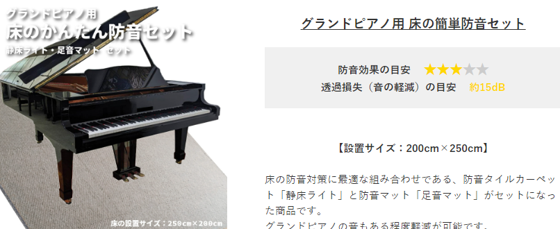 戸建てや一階のお部屋でグランドピアノを演奏する場合は、「静床ライト」と「足音マット」で対策しましょう。