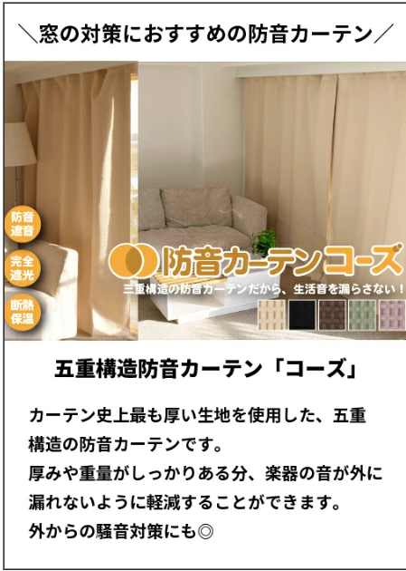 そのため、出来るだけ音が漏れないように対策されたい方は、壁や窓にも防音商品を設置していただくことをお勧めいたします。