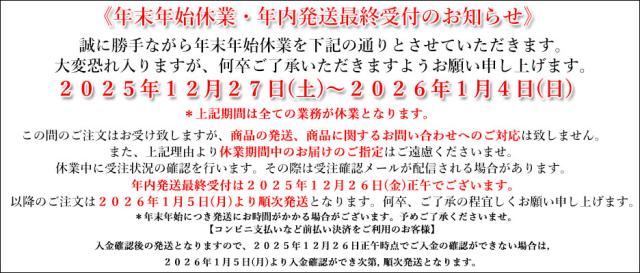 *年末年始につき発送にお時間がかかる場合がございます。予めご了承くださいませ。
