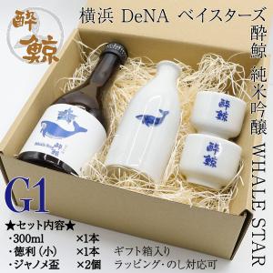 ギフト 横浜 DeNA ベイスターズ 酔鯨 純米吟醸 WHALE STAR 300ml 1本 + トックリ(小)1本 + くじら平盃 2個 G3:酒器セット 化粧箱入り