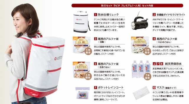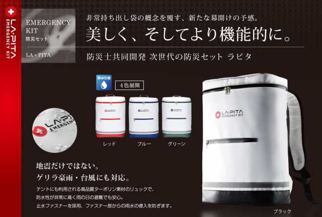 防災セット ラピタ プレミアム 1人用 防災士監修の防災グッズ全30品 おしゃれな防水バッグ