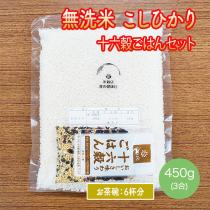 無洗米 コシヒカリ (450g) と 十六穀ごはんセット ポイント消化 令和5年産 キャンプ用品 防災 お試し お米 米 少量 送料無料 ※メール便