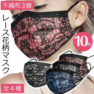 レ−ス花柄マスク 不織布 柄マスク 和柄 花柄 プリント 使い捨てマスク 10枚セット かわいい花柄 マスク 和柄 花柄プリント かわい