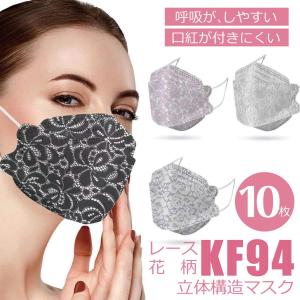 kf94マスク レース花柄 10枚入 立体マスク 不織布 マスク 大人用 3D立体加工 4層立体構造 kf94マスク レース花柄 立体マスク 不織布 マス