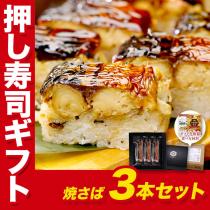 \販売数量30万本突破!/ 押し寿司ギフト詰合せ 焼さば寿司 3本セット(24貫/カット済み) 専用化粧箱&食べ方の説明書同封 米 サバ 焼き