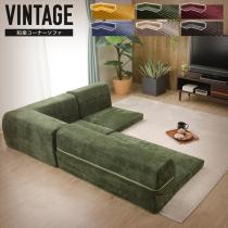 ローソファ 3点セット コーナーパーツ付 ソファ 座椅子 チェア リクライニング 座布団 レイアウト自在 ヴィンテージ 和楽
