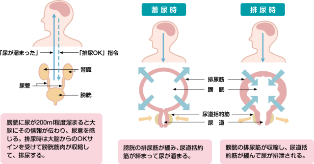 尿意を感じてから排尿するまでの流れを見ていきましょう。