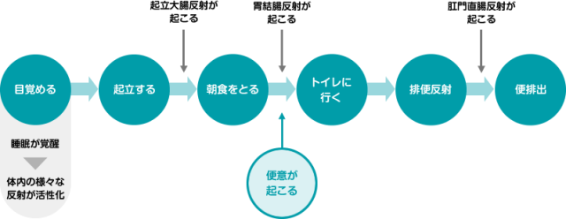 それでは、次に便意を感じてから排便するまでの流れを見ていきましょう。