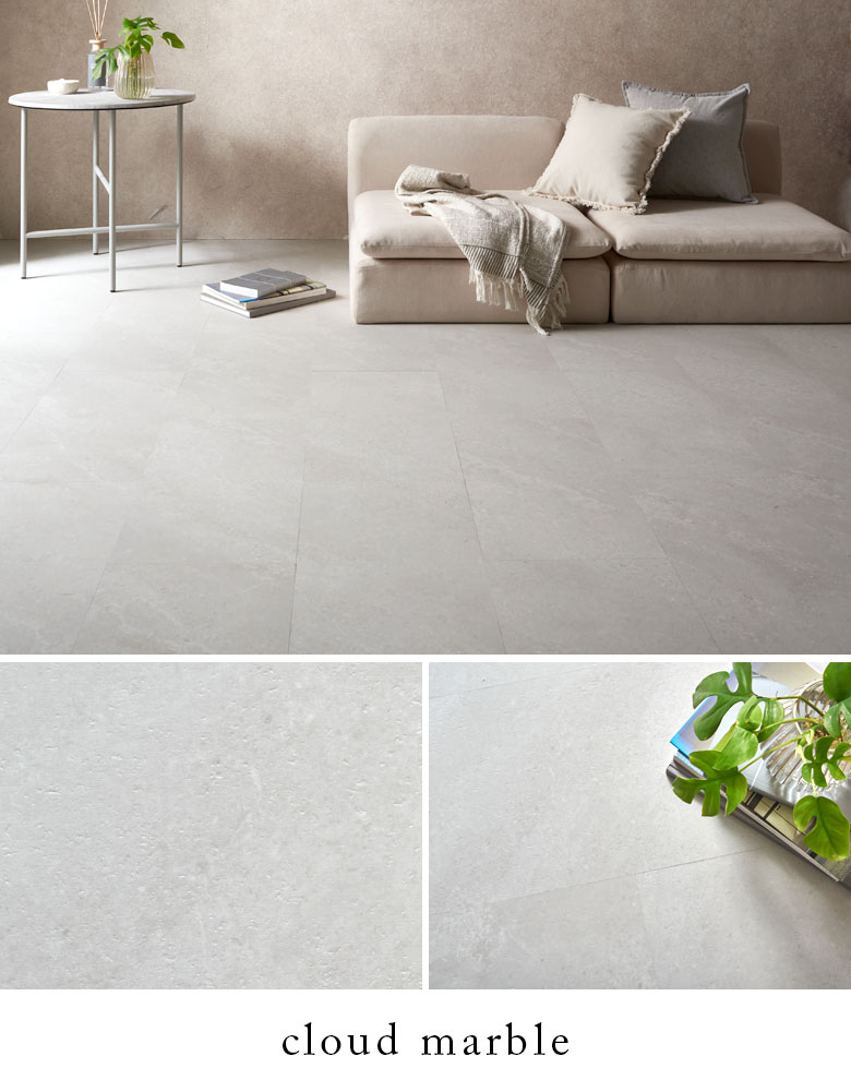 やわらかなライトグレージュに、雲のように淡く広がる大理石柄。