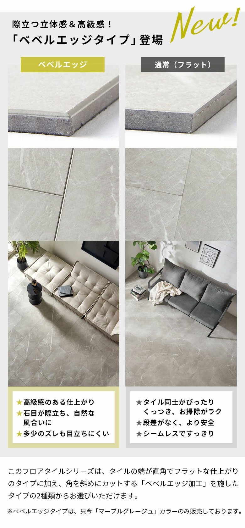 斜めにカットした“ベベルエッジ”タイプが仲間入り。