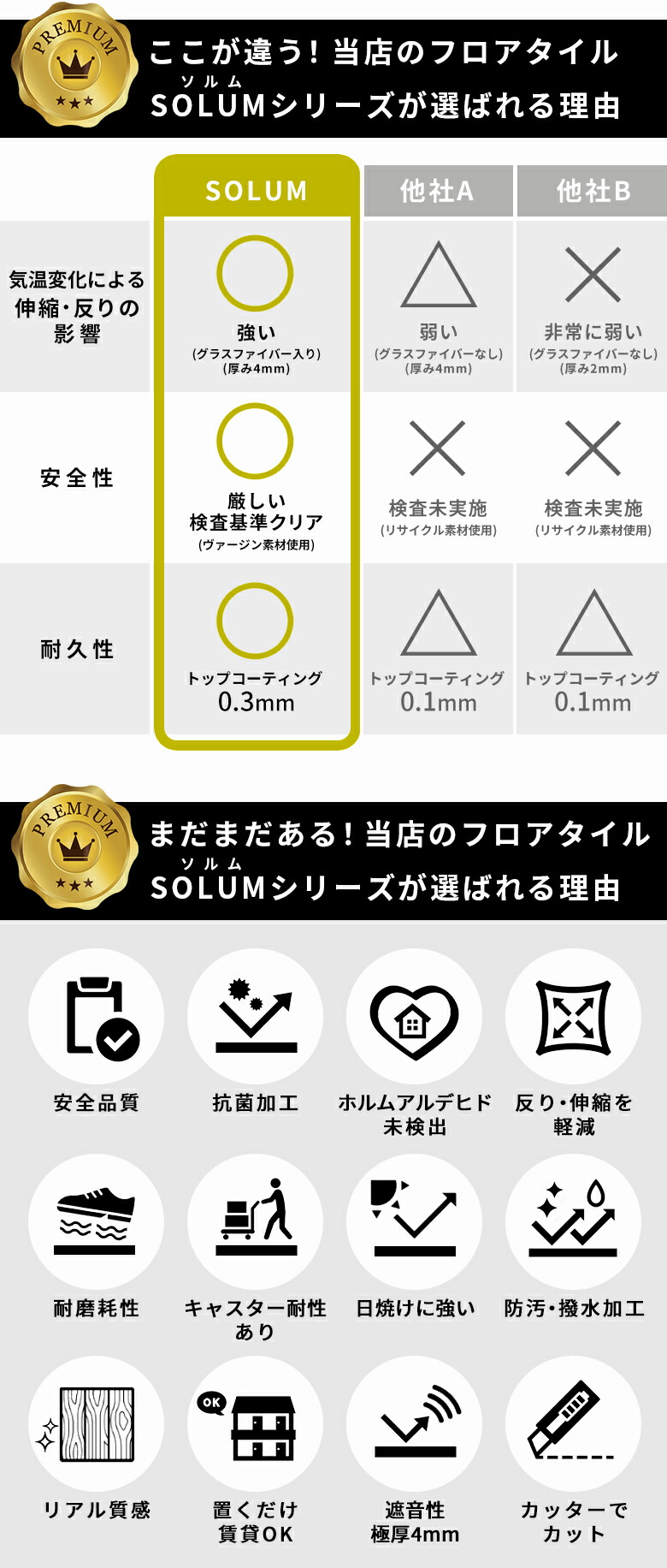 SOLUM(ソルム)は、表面に0.3mmのコーティングを施すことで