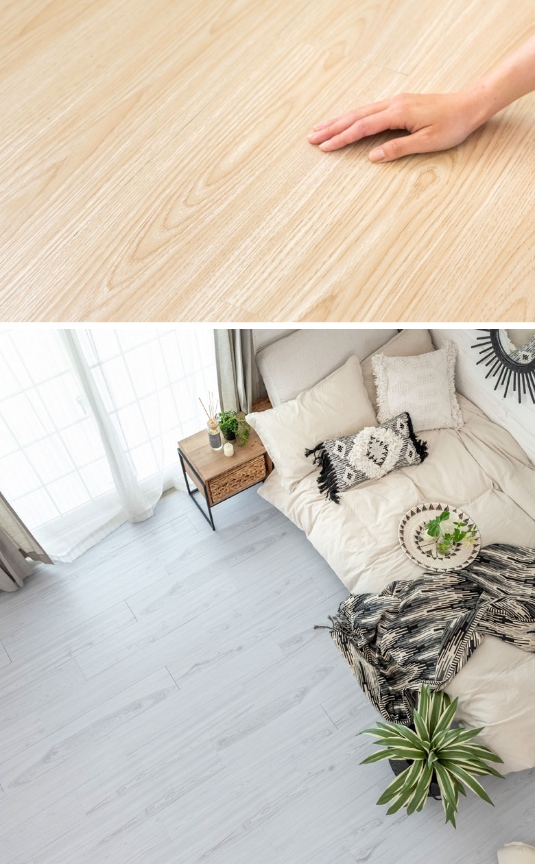 まるで本物のフローリングのようにリアルな質感。