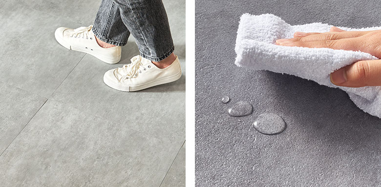 フロアタイルなら拭くだけで簡単にお手入れができるのも魅力。